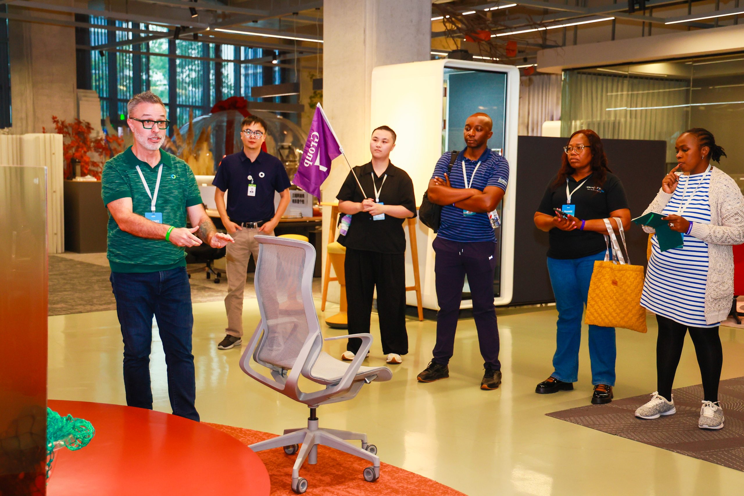 Participants explored Sunon’s latest innovations firsthand in the exhibition hall, including the new H5 chair, designed by the internationally famous designer Andreas Krob. Made from ocean-bound plastic, the H5 turns recycled materials into ergonomic seating that combines environmental responsibility with refined comfort. During their visit to the Qiantang Smart Manufacturing Base, partners saw how fully automated production lines and clean-energy systems bring this sustainable vision to life –from material recycling to precision engineering, every step reflecting Sunon’s commitment to green, intelligent manufacturing.